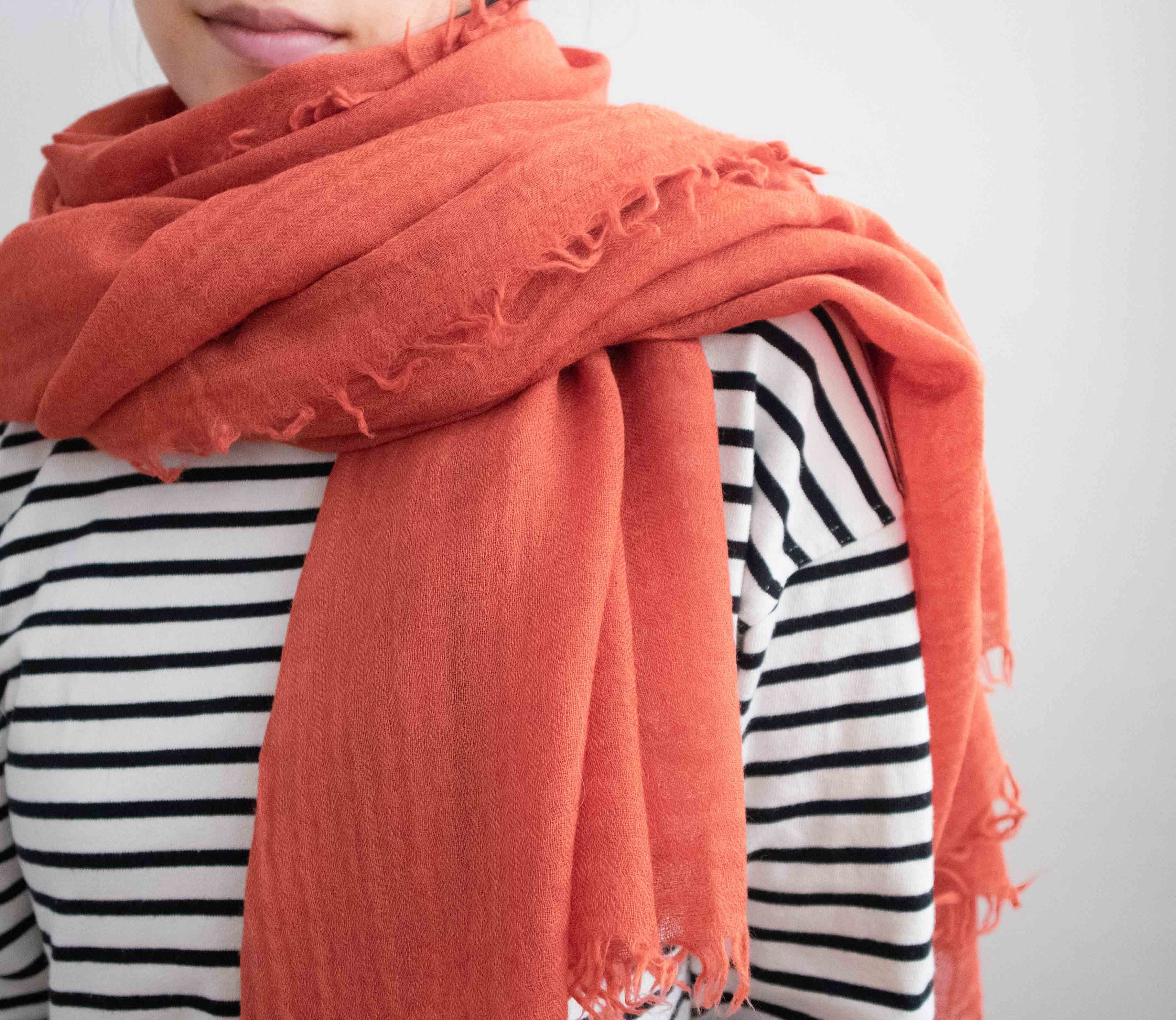 Ein strahlend schöner und romantischer Orangeton auf weicher Schurwolle, der dir einen herbstlichen Glow verleiht. 🍁